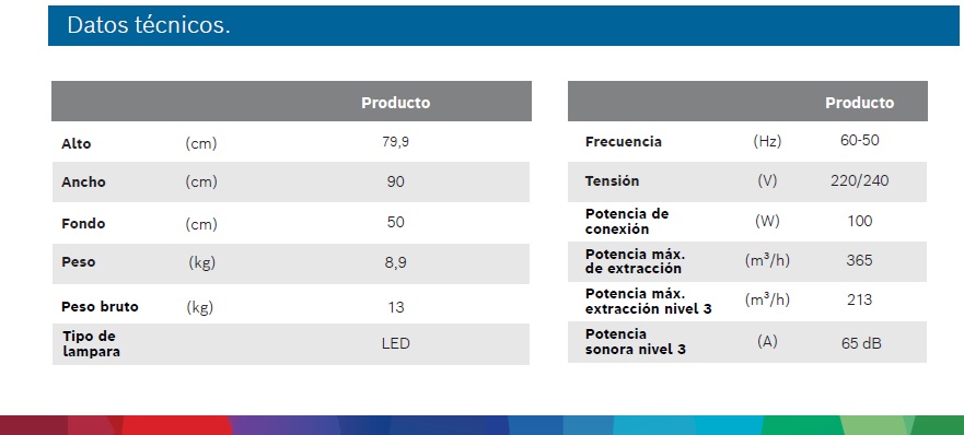 • Capacidad de extracción: proporciona hasta 360 m3/h, rápidamente asegura una óptima calidad de aire en la cocina.