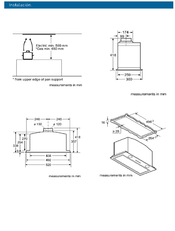 • Máxima extracción de aire en nivel intensivo: 650 m3/h.