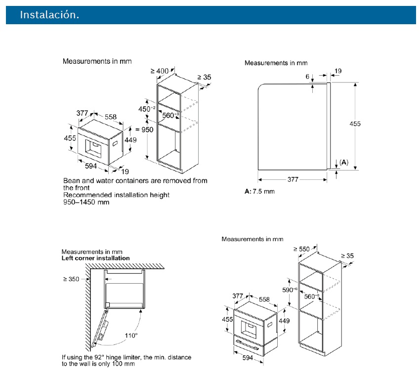 Serie 8 cafetera totalmente integrable negro, depósito de agua extraíble