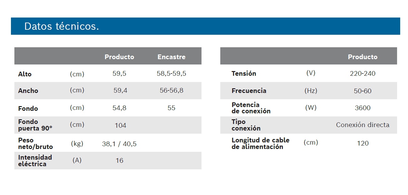 • Accesorios incluidos: Parrilla, Bandeja universal, Bandeja
