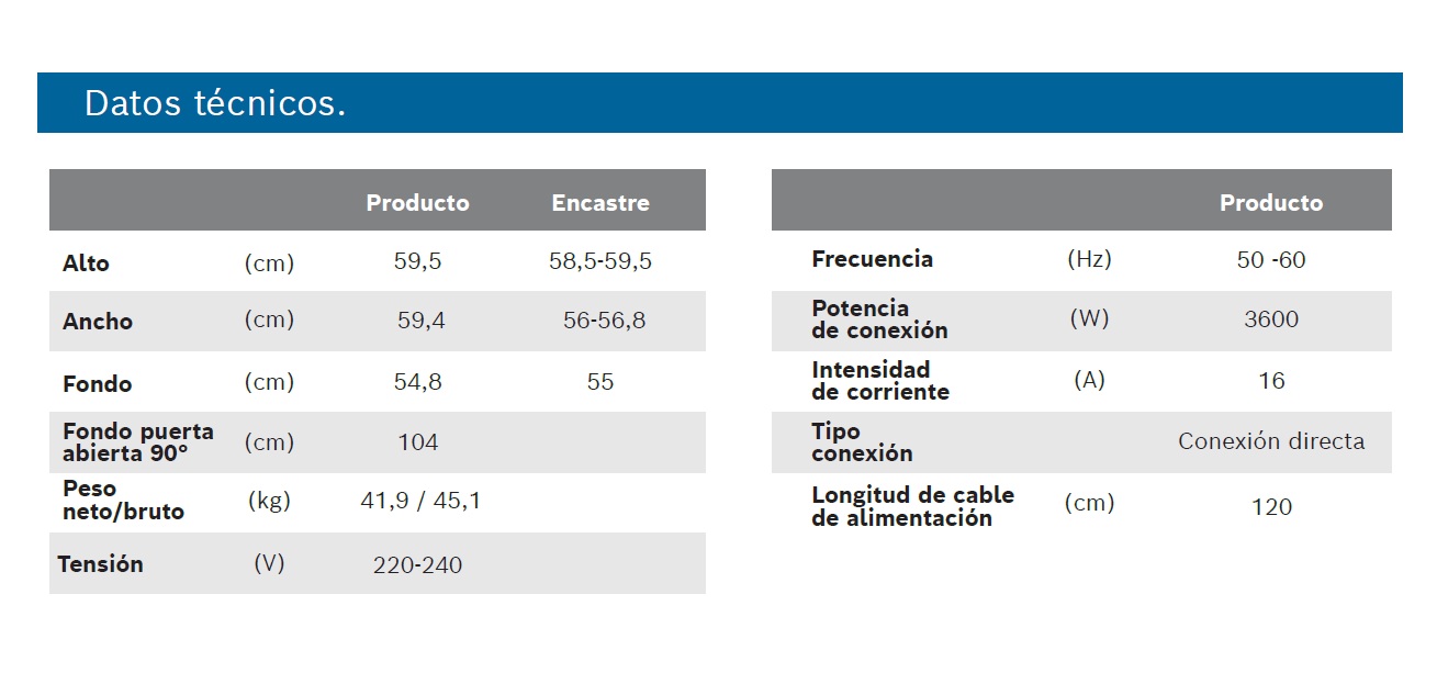 Funciones de seguridad: Bloqueo de seguridad para niños, indicador de calor residual, temperatura máxima de puerta 30 °C, apagado automático